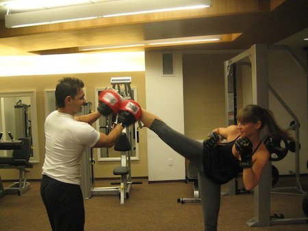 The combination of cardiovascular work using the climbing wall and treadmill along with the martial arts and boxing sessions has resulted in my becoming much more defined and toned without adding bulk. Incorporating the use of free weights with lunges and leg presses enables us to maximize time and get the most efficient full body workout. Who knew push-ups could be so effective?! He makes the most of each of our sessions and allows time at the end of each one to stretch appropriately. As I said to a friend last week, training with EMPOWERED has helped with the day-to-day life experiences. It makes the bad times not seem as bad and the good times seem that much better!